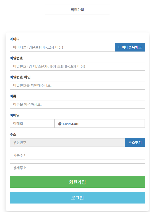 먼저 회원가입을 아래처럼 화면에 보이도록 만들어 줍니다.