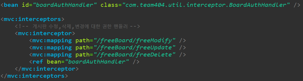 이렇게, 인터셉터 를 만들어 주었다면, 이 인터셉터가 실행될 수 있도록 Bean 으로 등록 해주어야 합니다.
