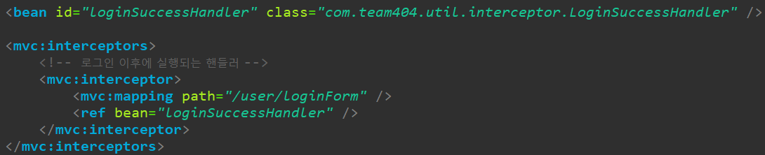이렇게 설정파일에서 작성을 해주게 되면 실행했을 때, 위의 Path 경로를 요청하는 페이지는 컨트롤러를 거치기 전에 위에서 만든 인터셉터를 거치게 됩니다.