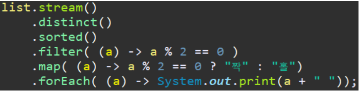 위처럼 만들어진 리스트를 StreamAPI 를 사용해서 아래처럼 사용할 수 있다.