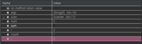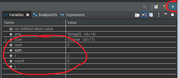 라인을 실행하면서, 변수들의 값이 변하는 걸 확인 할 수 있습니다.