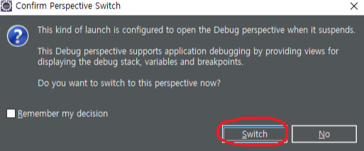 Switch 를 눌러 주시면 디버그 모드로 전환을 하게 됩니다.