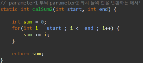 이번에는 원하는 수 부터 원하는 수 까지의 합을 반환 해주는 메서드를 만들고 싶어요
