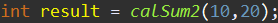 그러면 calSum2(10, 20) 에서 반환된 값이 result에 저장이 됩니다.