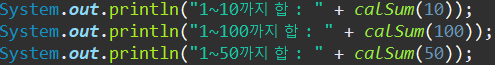 메서드 이름은 똑같이 calSum 으로 해줄게요