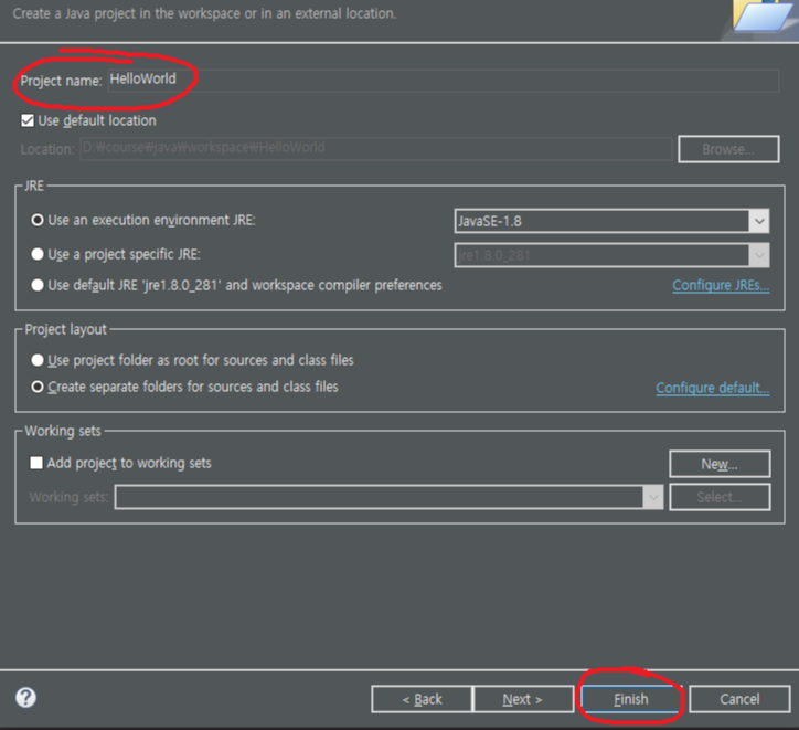 그 다음 나타나는 창에 Project name을 입력해줍니다. 저는 HelloWorld 라고 해줄게요.