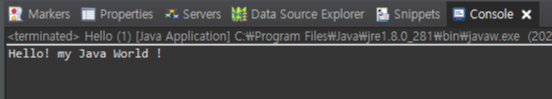 System.out.print("Hello! my Java World !");
