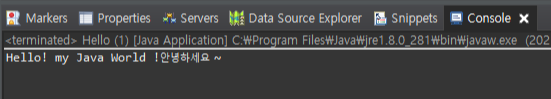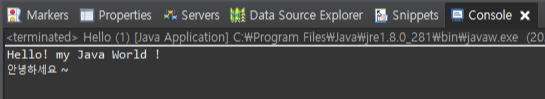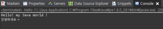 System.out.print("안녕하세요 ~"); 라는 코드를 추가하고 실행을 하고 결과값을 확인 해보겠습니다.