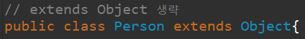사실 클래스는 모두 Object 라는 클래스를 상속 받고 있습니다. 따로 써주지 않으면 생략이 되는거에요