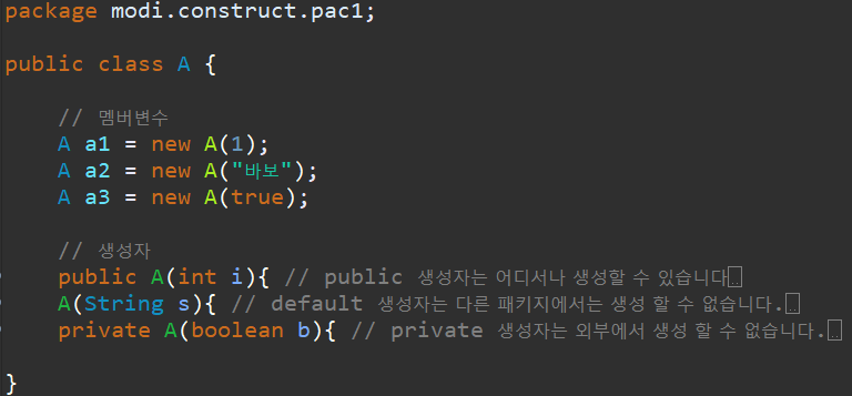 생성자를 3개 만들어 줬어요. public , default, private