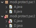 2. protected : 같은 클래스, 같은 패키지 접근 가능 ( 다른 패키지일 경우 상속을 통해 접근 가능 )