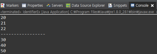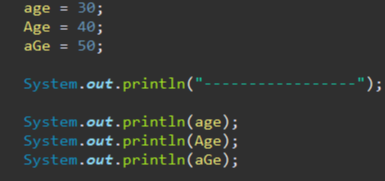 4. 키워드(예약어)는 사용불가 ex) int class; int byte;