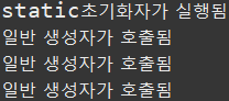 순서를 보면, 생성자보다, static 초기화 가 먼저 일어난걸 확인 할 수 있죠?
