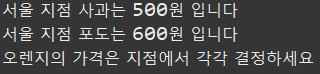 본사에서 사과, 포도, 오렌지 를 팔기로 했고, 가격은 지점마다 알아서 결정하기로 했습니다.