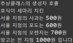 사과와 포도는 오버라이딩을 했으니, 자식 클래스에서 재정의 한 메서드를 실행을 하는데 !