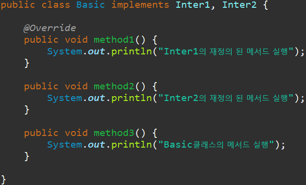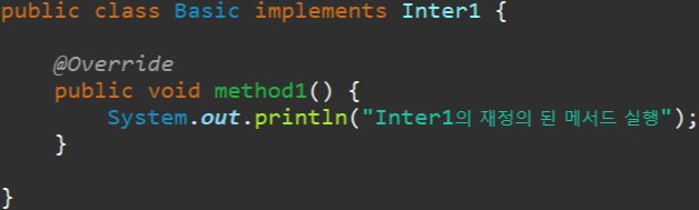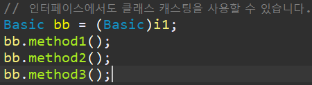 그리고 class Basic 은 오버라이딩만 무조건 해주고, 그 외에 멤버변수나 다른 메서드를 가지고 있을 수 있습니다.