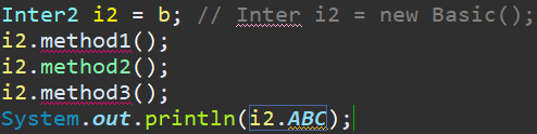 그러면 i1은 뭐죠? Inter1 타입이죠. 그래서 Inter1에 있는 PI와 method1 만 사용할 수 있습니다