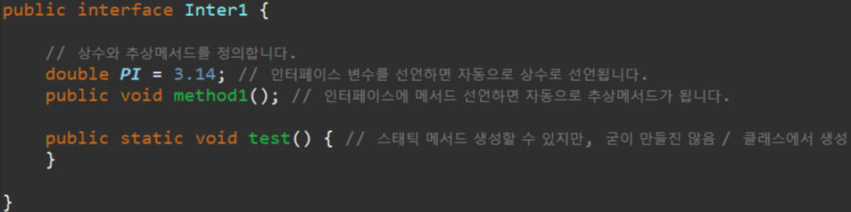 interface 내부는 상수 or 추상메서드 를 사용할 수 있습니다.