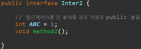 접근제어자 뒤에 class 가 오는 자리에 interface가 왔어요 ~
