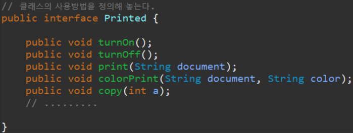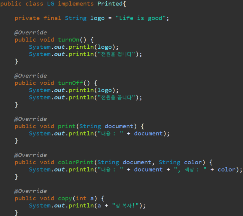즉 interface Printed 는 LG class 에 사용하는 법을 알려준다. 라고 할 수 있습니다