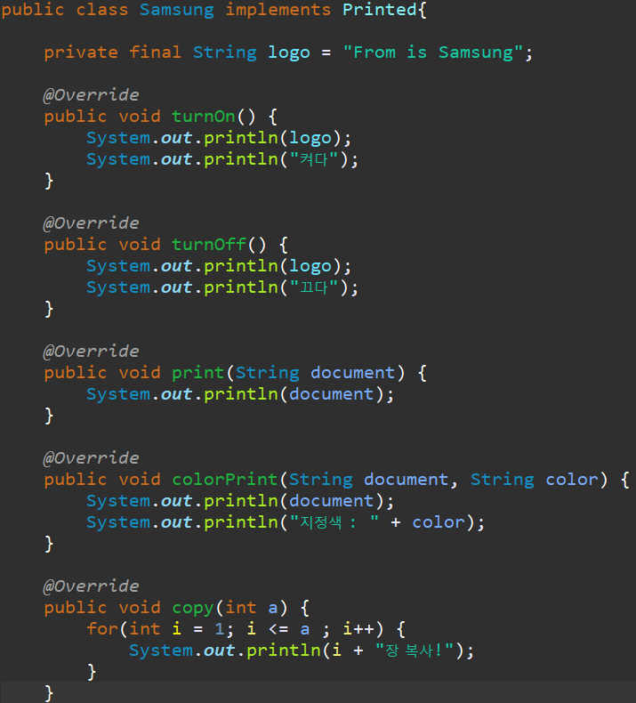 interface Printed 는 LG 와 SamSung 모두 사용이 가능하고, interface 를 보면서, 사용방법을 확인해서 오버라이딩 할 수 있죠?