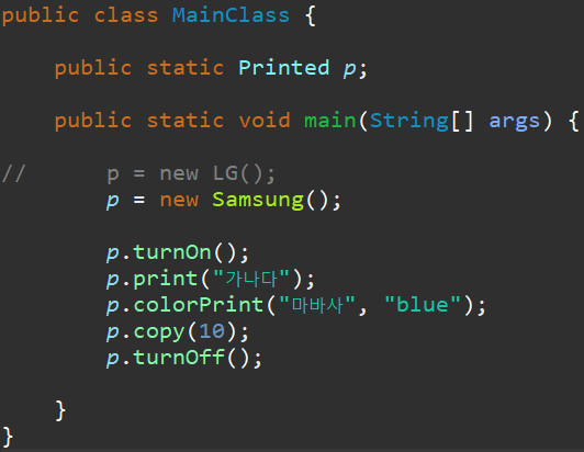 이렇게 main 과 LG or Samsung 의 매개체 역할을 하는게 interface 입니다 !