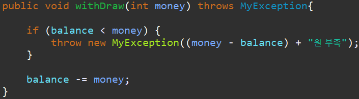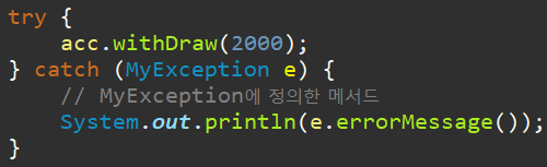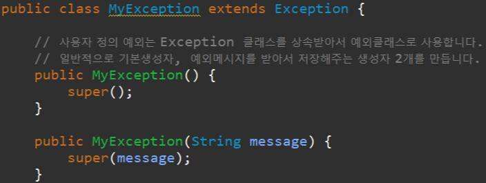 이렇게 만든 MyException 은 Exception 이랑 똑같이 사용할 수 있습니다.