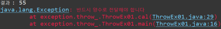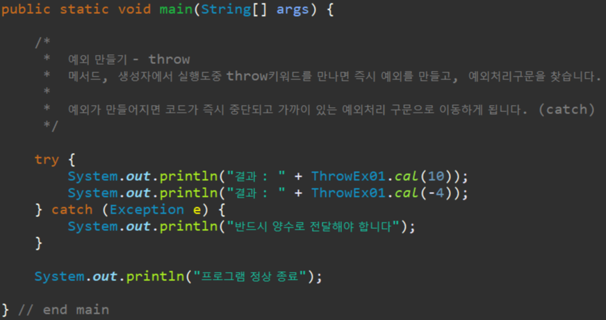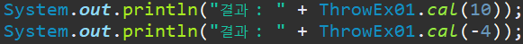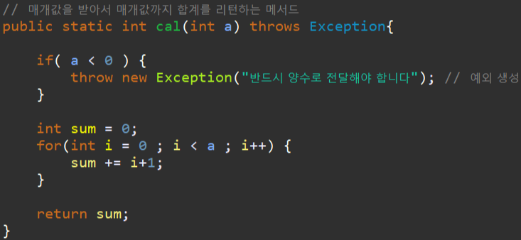 아까와 똑같은 코드에 , a가 0보다 작을때, throw new Exception 만 새로 생겼죠?