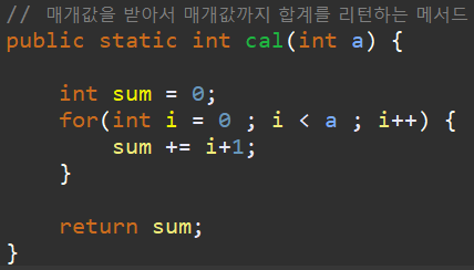1부터 매개변수의 값까지 더해서 리턴해주는 메서드 입니다.