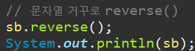 - reverse() -> 문자열을 거꾸로 변경
