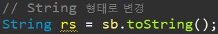 값의 변환이 자주 일어날 것 같은 경우에는 StringBuffer 를 써 주는게 좋겠습니다.