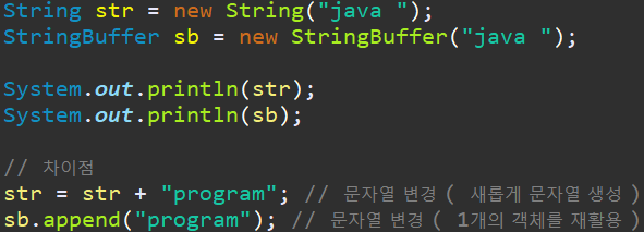 이러한 단점을 보완하기 위해서 나온게 StringBuffer , StringBuilder 입니다.