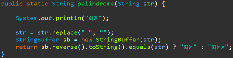 이번에 알아 본 메서드로 어제 만든 퀴즈 회문 을 고쳐 봅시다