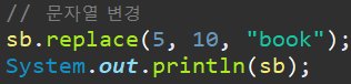 - replace(int start, int end, String str) -> 문자열 변경