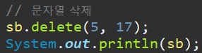 - delete(int start, int end) -> 문자열 삭제