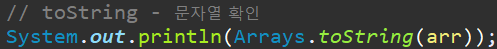 - toString(int[] a) -> 배열의 값들을 String 으로 반환 해줍니다.