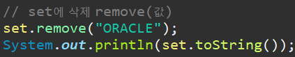 - remove(Obejct o) -> set에 저장되어 있는 값 o 삭제