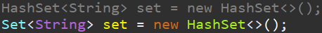 Set은 Interface 라서, 구체화 된 HashSet을 사용해 줍니다.