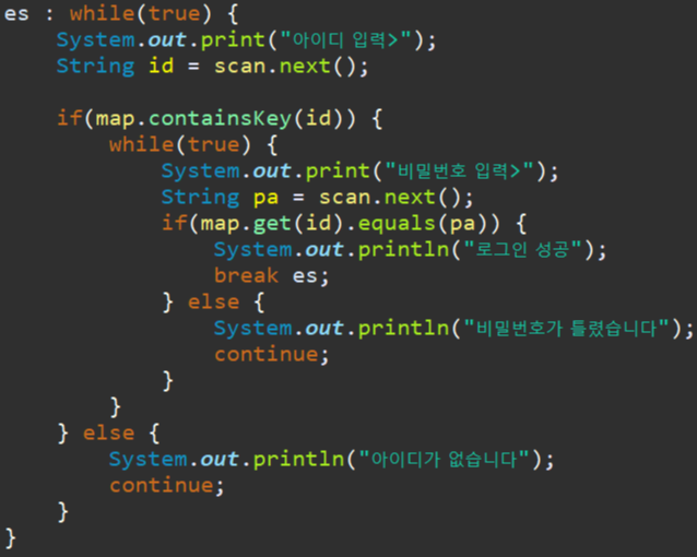 2. 아이디가 맵에 없는 값이라면 "아이디가 없습니다"를 출력.