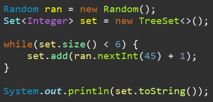 - 랜덤한 로또 번호 6개 만들기 ( 중복x )
